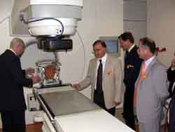 E.Ü. Tıp Fakültesi Radyasyon Onkolojisi Ana Bilim Dalı Başkanı Prof. Dr. Ayfer Haydaroğlu, bölümlerine yeni alınan yeni cihazları tanıttı.Tıbbi teknolojilerdeki ilerlemelere paralel olarak radyoterapide de baş döndürücü hızlı ilerlemelerin olduğunu söyleyen Prof. Dr. Ayfer Haydaroğlu, “Günümüzde en az yan etki ile en doğru tedavi sağlayan cihazlar geliştirilmektedir. Bu cihazlarla radyasyonun hem biçimi şekillendirilebilmekte hem de yoğunluğu ayarlanabilmektedir. Böylece kanserli hastaların, normal dokuları maksimum korunarak hedef bölgelerde radyasyon dozu toplanabilmektedir” dedi. Ege Üniversitesi’nin teknolojik açıdan baştan aşağı yenilendiğine dikkatleri çeken Prof. Dr. Haydaroğlu, “Ege Üniversitesi Tıp Fakültesi çağdaş gelişmelere ayak uyduruyor” diye konuştu. Türkiye’nin en modern ve geniş donanımlı radyoterapi cihazlarının Ege Üniversitesi’ne alındığının altını çizen Prof. Dr. Haydaroğlu, “Yeni cihazlarla hastalarımız birbirine bağlı bilgisayarlar üzerinden takip edilecek ve doğru yöntemlerle tedavi edilecekler” görüşünü dile getirdi. (Ege Ajans)