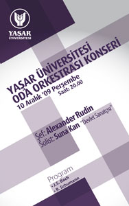 Yaşar Üniversitesi Oda Orkestrası, Devlet Sanatçısı Suna Kan’ın da solist olarak katılacağı bir konser verecek. Bornova Kampüs Konferans Salonu’ndaki konser 10 Aralık Perşembe günü saat 20.00’de başlayacak. Şef Alexander Rudin yönetimindeki Yaşar Üniversitesi Oda Orkestrası, Bach ve Schumann’ın eserlerini seslendirecek. Konserin öğrenciler için 1 TL, tam 3 TL ücretli biletleri Yaşar Üniversitesi’nin Bornova Selçuk Yaşar Kampüsü ile Alsancak Kampüsü’nden edinilebilecek.