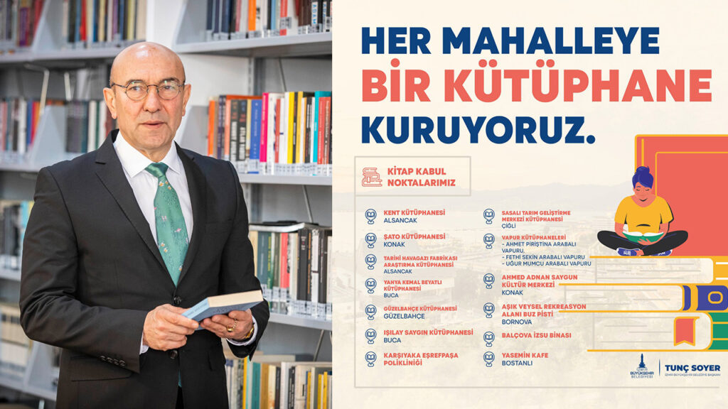 İzmir Büyükşehir Belediye Başkanı Tunç Soyer devam eden “Her Mahalleye Bir Kütüphane” kampanyası için vatandaşlara çağrıda bulundu. Kampanyayı 200 kitap bağışıyla başlatan