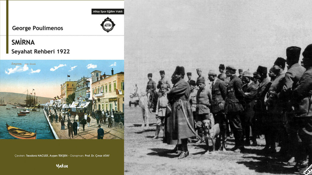 8 Nisan 2022, Altay Spor Eğitim Vakfı Anı Evi’nin küçük bahçesinde, Atina’dan gelen, ailesi Çeşme / Çiftlikköylü bir İzmir araştırmacısı, George Poulimenos’un “Smirna 1922 / Seyahat Rehberi“nin tanıtım töreni var. İzmir’i tanımak, İzmir tarihine ilişkin yeni yayınları dilimizde okumak hepimizi heyecanlandırıyor. Doğrusu, İzmir araştırmalarının özlenen düzeyin çok altında olduğunu hepimiz biliyoruz. Bu nedenle G. Poulimenos’un, büyük emekler vererek oluşturduğu, İzmir haritalarıyla daha bir değer kazanan kitabını önemsiyor, İzmir Limanı üstüne yaptığı araştırmanın da yayınlanmasını bekliyorum. Burada İzmir Haritaları üstüne çalışan, Poulimenos’un da yayınlarından yararlandığı öğretmenimiz Rauf Beyru’yu da anmalıyız.