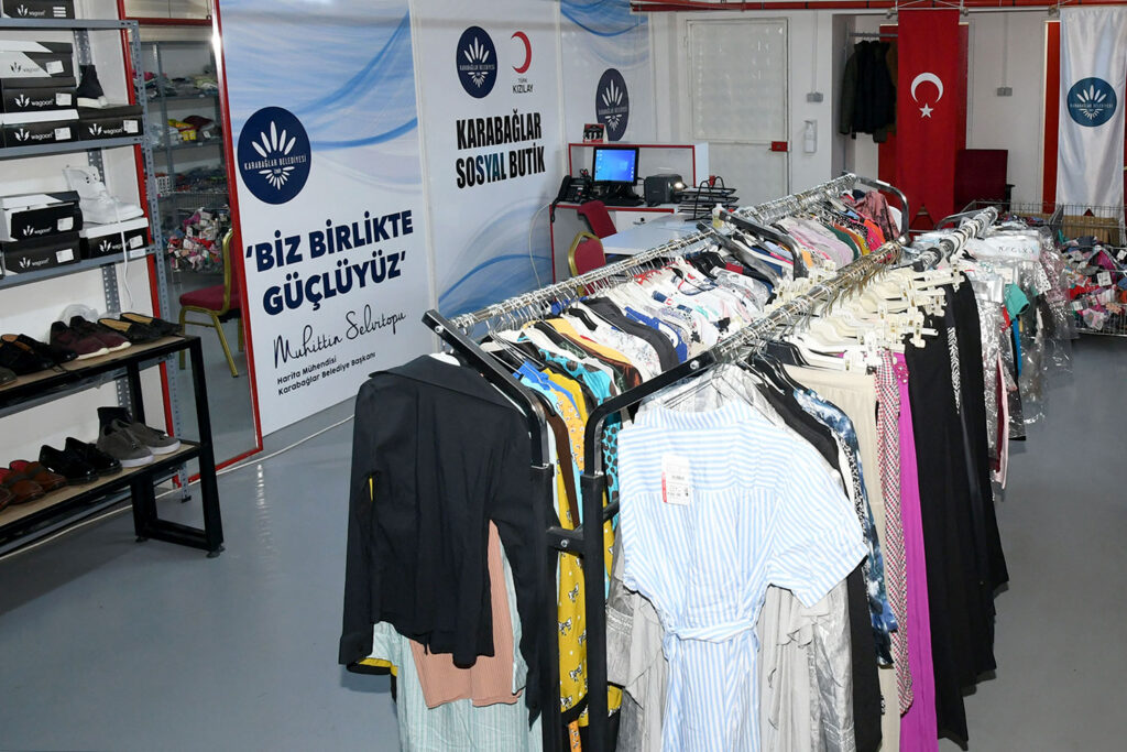 Karabağlar Belediyesi ve Türk Kızılayı işbirliğiyle Yunus Emre Pazaryeri altındaki 4190 Sokak üzerinde “Sosyal Butik” oluşturuldu. Sosyal butikte gıda, hijyen ve hiç kullanılmamış giysiler yer alıyor. İhtiyaç sahibi vatandaşlar kendilerine verilen kartlarda bulunan puanlarla buradan alışveriş yapıyor.