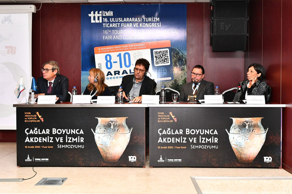 TTI İzmir Uluslararası Turizm Ticaret Fuar ve Kongresi kapsamında “Çağlar Boyunca Akdeniz ve İzmir Sempozyumu” düzenlendi. İzmir Büyükşehir Belediyesi’nin düzenlediği sempozyuma İzmir Büyükşehir Belediye Başkan Vekili Mustafa Özuslu, İzmir Büyükşehir Belediyesi Kent Tarihi ve Tanıtım Dairesi Başkanı Mehriban Yanık, arkeologlar, kazı başkanları ve fuar ziyaretçileri katıldı.