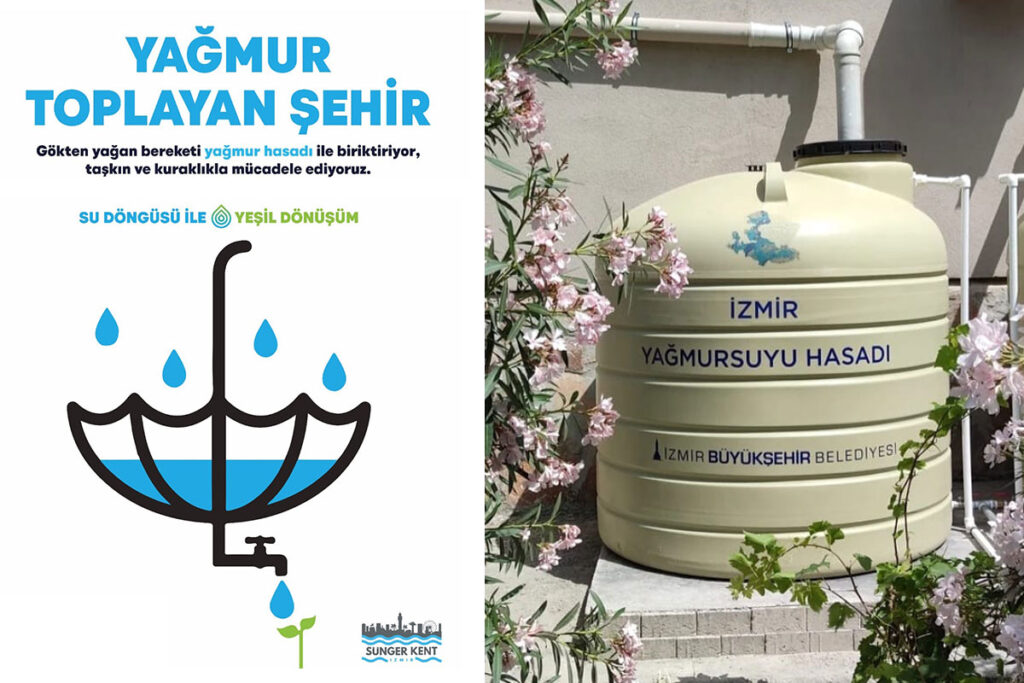 İzmir Büyükşehir Belediyesi yağmur suyu hasadı çalışmasını genişleterek, kuraklıkla mücadele amacıyla Türkiye’de ilk kez “Sünger Kent İzmir” projesini yaşama geçirecek. Projeyle beş yıllık süreçte, çatılara düşen yağmur suyunun hasat edilmesi, bilimsel yöntemlerle yer altında depolanıp, temizlenerek yeniden kullanıma verilmesi hedefleniyor.