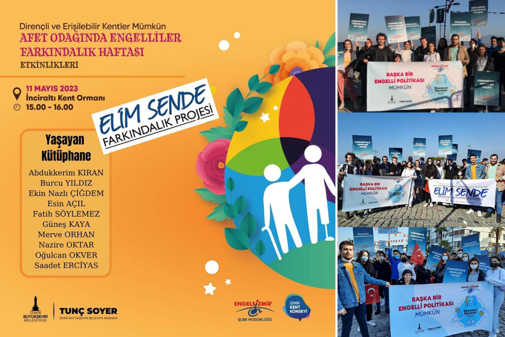 Engelsizİzmir Şube Müdürlüğü ve İzmir Kent Konseyi işbirliğiyle düzenlenecek “Dirençli ve Erişilebilir Kentler Mümkün-Afet Odağında Engelliler Farkındalık Haftası” etkinliklerinin ilki “Yaşayan Kütüphane” etkinliği. 11 Mayıs 2023 Perşembe günü yapılacak etkinliğin katılımcıları İnciraltı Kent Ormanı’nda 15.00-16.00 saatleri arasında bir araya gelecek.
