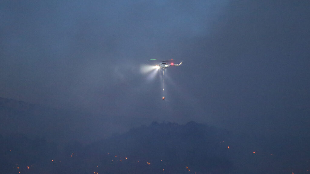 Yangını söndürme çalışmalarının sürdüğü sırada saat 23.53’te Antalya gece helikopteriyle iletişim kesildi. Helikopterin su almak için gittiği Tahtalı Baraj Gölü’ne düştüğü anlaşıldı. Bölgeye arama kurtarma çalışmaları için Jandarma, Emniyet, Sahil Güvenlik, AFAD, UMKE ve İzmir Büyükşehir Belediyesi İtfaiye Daire Başkanlığı ile İZSU ekipleri gönderildi.