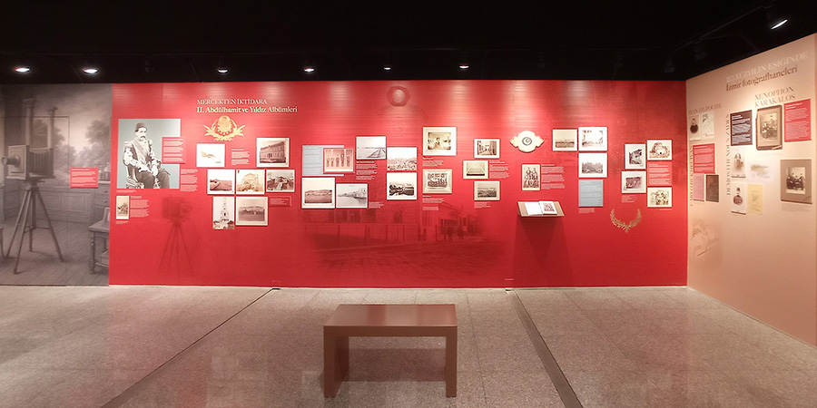 Serginin hoş bölümlerinden biri İzmir’in ünlü fotoğrafçılarından Hamza Rüstem’in fotoğrafhanesinde dekor olarak kullanılan ahşap sehpanın yer aldığı özel bölüm. Dönemin fotoğrafhanelerinde kullanılan stereoskop gibi orijinal malzemeler ile cam tavanlı poz atölyesi diaroması da sergide ziyaretçilerin ilgisini çeken noktalardan.