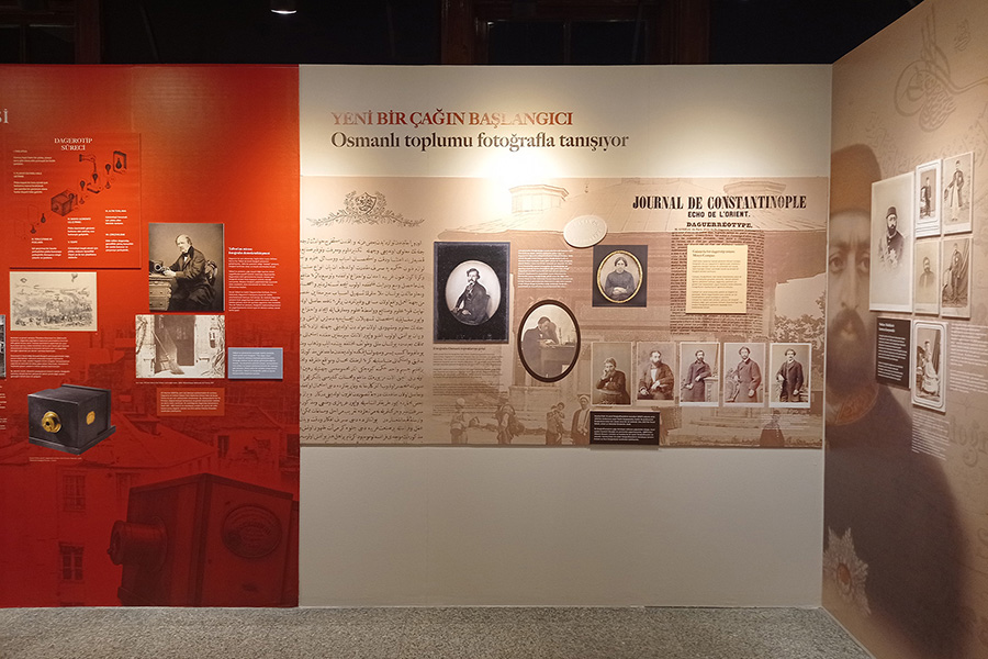 Sergi “Işık ve kimyanın mucizesi – Fotoğrafın doğuşu” bölümüyle başlıyor. 1839 yılında Louis Jacques Mandé Daguerre tarafından keşfedilen ve onun adıyla anılan, bir fotoğraf baskı tekniği olan Dagerotip’in tarihçesi anlatılıyor. Sekiz saatlik uzun bir pozlama sürecinin sonunda elde edilen tarihin ilk kalıcı fotoğrafının da bulunduğu sergi “Yeni bir çağın başlangıcı – Osmanlı toplumu fotoğrafla tanışıyor” bölümüyle sürüyor. Sergide fotoğrafı çekilen ilk Osmanlı hükümdarı olan Sultan Abdülaziz‘in dönemin ünlü fotoğrafçıları Abdullah Biraderler’in kamerası karşısında çekilmiş fotoğrafı da yer alıyor.