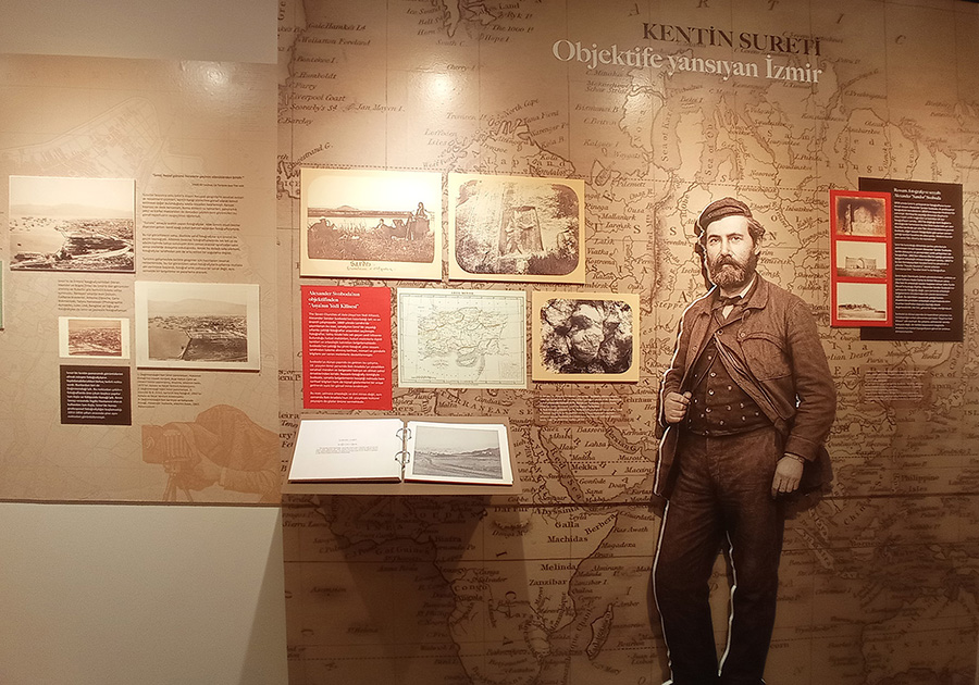 Sergide özenle hazırlanmış panolarda İzmir’i kayda geçiren Rum, Ermeni, Musevi fotoğrafçılar, unutulmuş fotoğrafhaneler, kentin günlük yaşamından kareler, fotoğraflar üzerinden İzmir’in gelişimi, seyyahların tarihe kaydettiği bambaşka bir İzmir izleniyor. Bu kapsamlı sergi için Mert Rüstem, Nejat Yentürk, Ercüment Tahtakıran, Yavuz Çorapçıoğlu, Fabio Tito, Patrice Guiffray, Mark Giraud, Gökçen Adar, Çevik Çullu, Nazmi Şurğun, Bahattin Öztunçay, Ömer Koç, Koç Üniversitesi Suna-İnan Kıraç Akdeniz Medeniyetleri Araştırma Merkezi (AKMED), İstanbul Üniversitesi Nadir Eserler Kütüphanesi, Salt Araştırma, Türk Tarih Kurumu Kütüphanesi, Levantine Miras Vakfı arşiv ve koleksiyonlarından destek alınmış.