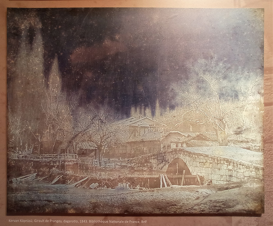 “İzmir Fotoğrafhanesi – Görsel Hafızanın İnşası (1840-1922)” sergisinde kentin arkeolojik mirasını belgeleyen fotoğrafçılara, seyyahlara, dagerotip gezginlerin İzmir’de yaptığı çalışmalara da yer veriliyor. İzmir’in ilk dagerotip görüntüsünün 1843 yılının Nisan ayında İzmir’e gelen gezgin degoratipçilerden Girault de Prangey tarafından Kervan Köprüsü’nde çekildiği belirtiliyor. Günümüze ulaşan bu plakanın kentin bilinen en erken dagerotip görüntüsü olduğu aktarılıyor.