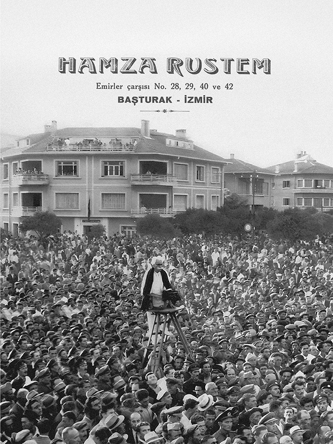 Hamza Rüstem, 100 yıl önce Kemeraltı’nda açtığı fotoğrafhanesiyle kentini kayda geçirmiş ve ardında görkemli bir görsel arşiv bırakmış. Kentte yaşanan büyük yangın sonrası çok az sayıda fotoğrafçının olması bu genç ve çalışkan girişimciye yeni bir yaşam kuracağı İzmir’de de başarının yollarını açmış.