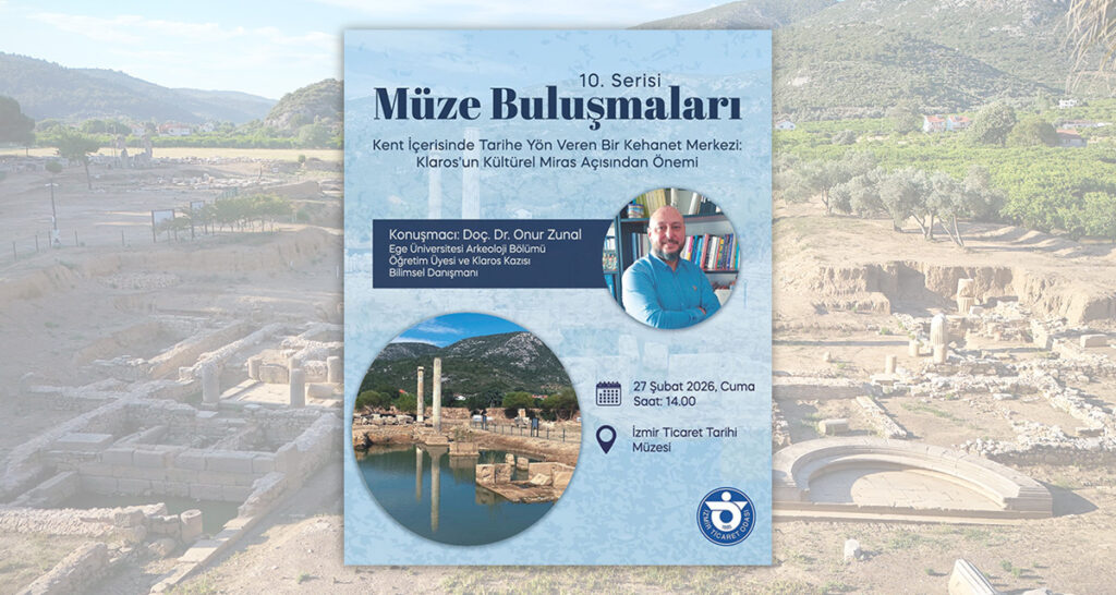 İzmir Ticaret Odası İzmir Ticaret Tarihi Müzesi’nde düzenlenen “Müze Buluşmaları” etkinliğinde bu ay Klaros Kehanet Merkezi ele alınacak. Etkinliğe Ege Üniversitesi Arkeoloji Bölümü Öğretim Üyesi ve Klaros Kazısı Bilimsel Danışmanı Doç. Dr. Onur Zunal konuk olacak. “Kent İçerisinde Tarihe Yön Veren Bir Kehanet Merkezi: Klaros’un Kültürel Miras Açısından Önemi” başlıklı söyleşi 27 Şubat 2026 Cuma günü saat 14.00’te başlayacak.