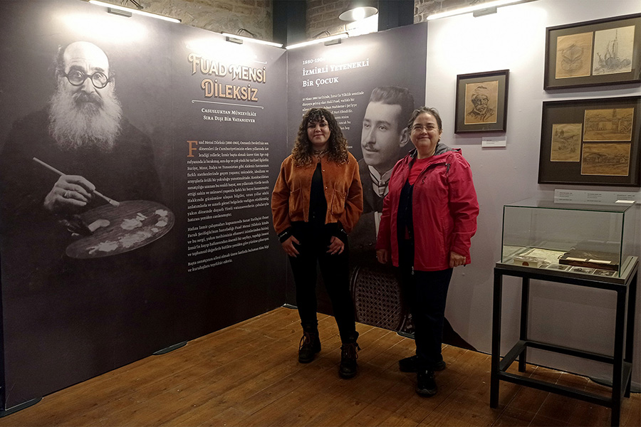 Fuad Mensi Dileksiz’in kişisel eşyalarının, aile fotoğraflarının, yaptığı heykellerin bazılarının yer aldığı sergiyi Dokuz Eylül Üniversitesi Müzecilik Bölümü’nden yeni mezun olmuş Esin Yavaş eşliğinde gezdim. İzmir’in kayıp hafızasından çıkıp günümüzü bu sergiyle selamlayan Fuad Mensi Dileksiz’in renkli yaşam öyküsü, genç müzeci arkadaşımızı öylesine etkilemiş ki, tüm İzmirlilerin bu sergideki eserleri görmesini istiyor.