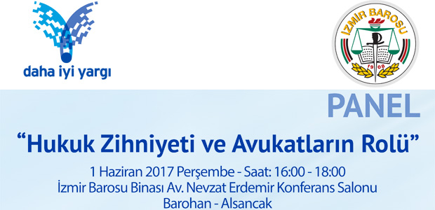 İzmir Barosu ve Daha İyi Yargı Derneği işbirliğiyle “Hukuk zihniyeti ve avukatların rolü” konulu panel düzenlenecek. İzmir Barosu binasındaki Av. Nevzat Erdemir Konferans Salonu’ndaki panel, 01 […]