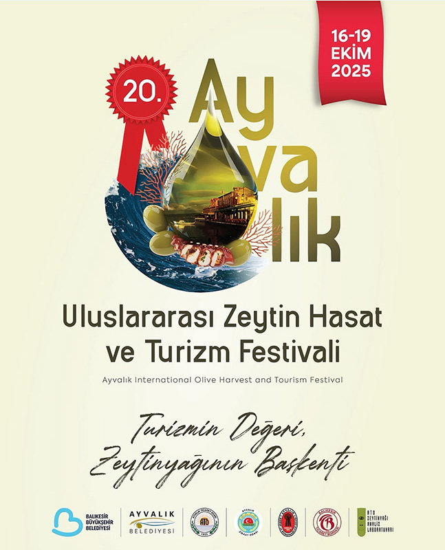 Zeytin ve zeytinyağı sevdalıların merakla beklediği, Ayvalık'ın lezzeti ve kültürü bir araya getiren "Uluslararası Zeytin Hasat ve Turizm Festivali", 16-19 Ekim 2025 tarihleri arasında 20. kez düzenleniyor. Bu yıl "Turizmin Değeri, Zeytinyağının Başkenti" sloganıyla düzenlenen festival boyunca atölye çayışmaları, paneller, nefes etkinliği, yoga etkinliği, kürek-rüzgar sörfü, dijital hasat zeytin temalı oyun tasarımı gibi eş zamanlı etkinlikler de gerçekleştirilecek.