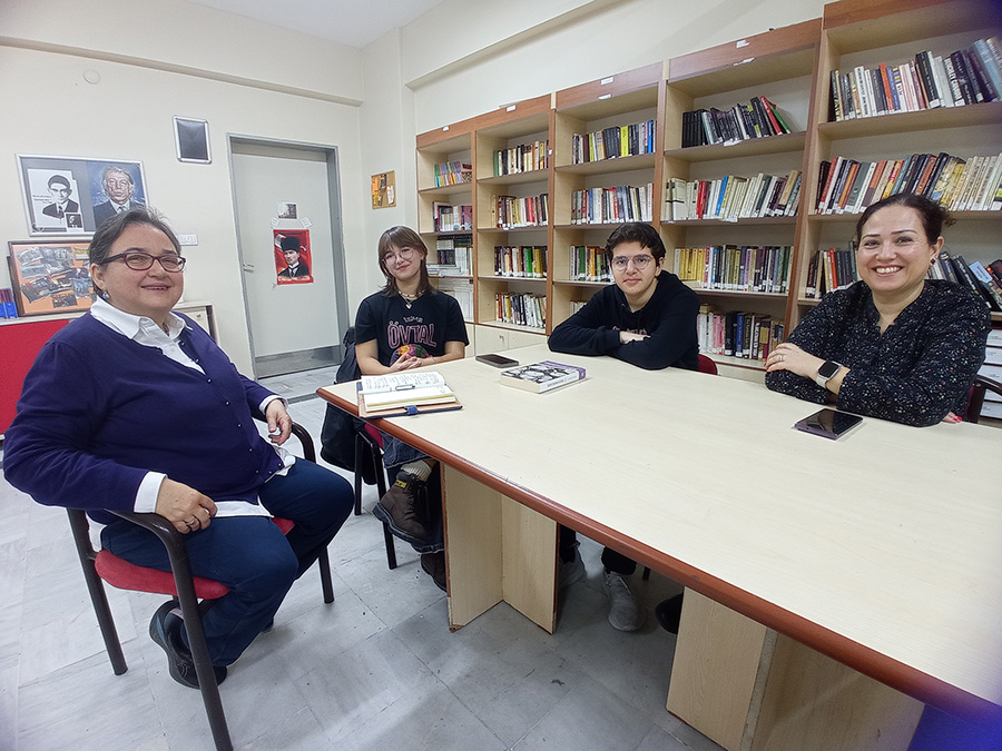 İzmir'in ayakta kalmış, korunması gerekli taşınmaz kültür varlıkları muvakkithanelerle ilgili projeyi sürdüren öğrenciler ve danışman öğretmenleri Gonca Tire ile Övgü Terzibaşıoğlu Anadolu Lisesi'nin kütüphanesinde buluştuk. Öğrencilerin büyük emek vererek yarışmaya hazırlandıkları projelerini ve yaptıkları çalışmaları dinledim.