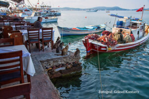Balıkçıların geliş saatlerini, ne zaman nereye yanaşacaklarını öylesine gözlemlemişler ki, biri diğerinin bekleme alanına müdahale bile etmez. Halk arasında şöyle bir deyiş vardır, boşuna dememişler, “Ayvalık’ın kedisi, ölüsü, delisi” diye…