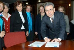 Türkiye Soroptomist Federasyonu Proje Koordinatörü ile İzmir’deki 4 Soroptomist Kulübü yöneticileri, Büyükşehir Belediye Başkanı Aziz Kocaoğlu’nu ziyaret etti. Kocaoğlu, ziyaret sırasında, Soroptomist Kulüpleri Federasyonu’nun dünyada hoşgörü, insan hakları, adalet ve doğal kaynakların adil paylaşımı ile barış ortamının sağlanmasını amaçlayan “Barış Belgesi”ni imzaladı. Proje Koordinatörü İsmet Tekin, soroptomist kulüplerinin dünyada kadının statüsünün yükseltilmesi ve insan haklarının genişletilmesi için çalıştığını belirtti. Türkiye Soroptomist Federasyonu’nun da üye olduğu Avrupa Soroptomist Federasyonu’nun bu yıl dünyada barışı tesis etmeye yönelik bir proje yürüttüğünü anlatan Proje Koordinatörü İsmet Tekin, “Barışı Kadınlar Yapar” isimli proje çerçevesinde bir de “Barış Belgesi” hazırladıklarını dile getirdi. Başkan Aziz Kocaoğlu’nun imzaladığı “Barış Belgesi”ni Temmuz ayında Viyana’da yapılacak olan Soroptomist Federasyonları kongresine götüreceklerini anlatan Tekin, “Bu kongre için hazırlanacak kitabın Türkiye ile ilgili bölümünde, İzmir’i temsilen Barış Belgesi’ne imza atan Büyükşehir Belediye Başkanımız Aziz Kocaoğlu’nun ismi de yer alacak” diye konuştu. İzmir Büyükşehir Belediye Başkanı Aziz Kocaoğlu da Barış Belgesi’ne seve seve imza attığını kaydetti. Kocaoğlu, “Savaşlar ve felaketler ile çalkalanan dünyamızda Türk ve dünya kadınlarının barışın tesisi, hoşgörü, adalet ve özgürlüklerin gelişmesi için gösterdiği çabalar takdire değerdir” dedi.