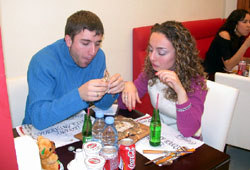 Sevgililer Günü’nde herkes sevdiğini bir şekilde mutlu etmeye, ona olan sevgisini değişik vesilelerle dile getirmeye çalışıyor. Bu özel günde “Erkeğin kalbine giden yol, midesinden geçer” düşüncesinden hareket eden Dost Pide, Park Bornova Alışveriş Merkezi’ndeki şubesinde “Çiftler Arası Lahmacun Yeme Yarışması” düzenledi. Ege Üniversitesi İletişim Fakültesi Halkla İlişkiler Topluluğu organizatörlüğünde Dost Pide tarafından gerçekleştirilen yarışmaya kura ile belirlenen sekiz çift katıldı.Çiftlerin kıyasıya mücadele ettiği yarışmada birinciliği 23 lahmacun yiyen Merve Bilgi-Çağlar Aktaş çifti, ikinciliği Akan Yanık-Bilge Yılmaz üçüncülüğü ise Muharrem Gürsu-İlknur Gürses çifti aldı. Yarışma sonunda ilk üç dereceye giren çifte sırasıyla 150, 100 ve 50 YTL değerinde hediye çeklerinin yanı sıra kupa verildi. Ayrıca yarışmayı izlemeye gelen konuklara lahmacun ikram edildi. (Ege Ajans)