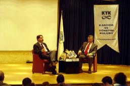 Kariyer ve Yönetim Kulübü (KYK) “Yabancılaşma, Değerlerimiz ve Sevginin Yayılışı” konulu söyleşi düzenledi. Dokuz Eylül Üniversitesi (DEÜ) İktisadi ve İdari Bilimler Fakültesi Konferans Salonu’nda gerçekleştirilen söyleşiye bir çok akademisyenin yanı sıra öğrenciler katıldı. KYKının danışmanları aras’nda yer alan Prof. Dr. Ömer Baybars Tek ve bir dönem Çalışma ve Sosyal Güvenlik Bakanlığı görevini üstlenmiş olan Hürriyet Ege Bölge Temsilcisi Hakan Tartan anılarını, deneyim ve bilgilerini konuklarla paylaştı. Söyleşiye katılan Hakan Tartan, öğrencilere, “Sadece mesleğiniz ile sıkışmayın kendi iç dünyanızı keşfedin, kendinizi geliştirin, uğraş edinin” öğüdünde bulundu. Prof. Dr. Ömer Baybars Tek de ise söyleşide aşk ve sevginin gerektirdiği sorumluluk, saygı, hükmetmeme ve sahiplenmeme konular’nda bilgilerini öğrenciler ile paylaştı.