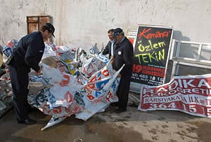 İzmir Büyükşehir Belediyesi’nin kentte çevre ve görüntü kirliliği oluşturan afiş ve pankartlara karşı mücadelesinin sürdüğü belirtildi. İzmir Büyükşehir Belediye Başkanı Aziz Kocaoğlu, kentin ana caddeleri, bulvarları ve meydanlarda düzenin korunması için Zabıta Müdürlüğü ekiplerinin, ilçe belediyelerin zabıta müdürlükleriyle koordineli bir çalışmayı sürdürdüklerini söyledi. Başkan Kocaoğlu, “İzmir’de görüntü kirliliğiyle mücadelemiz 2006 yılında da etkin bir biçimde sürecek. Vatandaşlarımızın, yasalara ve kent estetiğine uygun şekilde ilan ve reklam çalışması yapmalarını istiyoruz” diye konuştu. kent içinde uygunsuz yerlere ya da izinsiz olarak asılan bez pankart, kağıt afişler ve reklam tabelalarını kaldıran İzmir Büyükşehir Belediyesi Zabıta Müdürlüğü ekipleri, harç ve rüsumları yatırılmamış veya belirlenen yerler dışına asılmış afişleri de tek tek topluyor, sorumlular hakkında da yasal işlem uyguluyor. Zabıta Müdürlüğü ekiplerinin 2005 yılı boyunca 301 adet reklam levhası ve yol panosu, 5 bin 476 adet bez pankart ile 3 bin 150 adet kağıt afiş olmak üzere toplam 8 bin 657 adet kaçak afiş ve tabela topladığı belirtildi. Geçtiğimiz yıl uygunsuz yerlere afiş asan 350 kişi ve firmaya ihtarname çekildiğini belirten yetkililer, ihtara uymayan 49 kişiye zabıta ve İzmir Büyükşehir Belediyesi Encümeni aracılığıyla toplam 22 bin 425 YTL para cezası uygulandığını kaydetti.