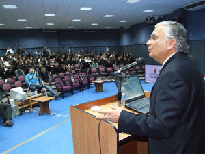 Milli Eğitim Vakfı (MEV) İzmir Özel Okulları’nın konuğu olarak İzmir’de bulunan Prof. Dr. Haluk Akalın, MEV Özel Avni Akyol Lisesi ve MEV Özel İzmir Fen Lisesi öğrencilerine Türkçeyi diğer dilerden güçlü kılan özellikler hakkında bilgi verdi. Dünyada en çok kullanılan beşinci dil olan 12 milyon metrekarelik alan içinde 220 milyon insanın konuştuğu Türkçenin, yaygınlığı, yapısı, söz varlığı ve etkileme gücü açısından önemli bir dil olduğu vurgulandı. Türk Dil Kurumu’nun çalışmaları hakkında da bilgi veren Prof. Dr. Akalın, öğrencilerin medyada özensiz Türkçe kullanımının toplumu nasıl etkilediğine ilişkin sorularını “Toplumun büyük bir kesiminde kendi diline yabancılaşma var. Pek çok ülkede radyo ve televizyonların dili örnek teşkil eder. Bizde ise medyada konuşması kötü, söz varlığı kısır, 200-300 kelime ile konuşan insanlar görev alıyor. Son derece köklü ve güçlü bir dil olan Türkçemiz bu utancı hak etmiyor” diye yanıtladı. Bir çok işletmenin adının Türkçe olmadığını belirten Prof. Dr. Haluk Akalın, “Türk Dil Kurumu olarak insanlarımızı işyerlerine Türkçe adlar vermeleri konusunda özendirmeye çalışıyoruz. Yabancı olan iş yeri adını Türkçe olarak değiştiren firmaları da ödüllendiriyoruz. Ancak kalıcı çözüm istiyorsak bu alandaki yasal boşlukları acilen doldurmalı, yasal düzenlemeler oluşturmalı ve uyulup uyulmadığını da etkin bir şekilde denetlemeliyiz” dedi.