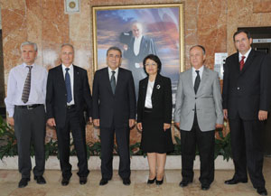 Ege Üniversitesi’nin yeni Rektörü Prof. Dr. Candeğer Yılmaz, yardımcılıklarına atanan Prof. Dr. Mehmet Süer Anaç, Prof. Dr. Atilla Silkü ve Prof. Dr Azmi Telefoncu’yla birlikte İzmir Büyükşehir Belediye Başkanı Aziz Kocaoğlu’nu ziyaret etti. Kocaoğlu, Prof. Dr. Candeğer Yılmaz’ın rektörlük görevine atanmasından büyük mutluluk duyduğunu belirterek, “Ege Üniversitesi’yle geçmişten bugüne uyum içinde çalışıyorduk. Ayrıca Candeğer Hocamız ile 15 yıllık bir komşuluk ilişkimiz var. Kendisinin bu görevi en iyi şekilde yapacağına ve Ege Üniversitesi’nin gelişmesine çok büyük katkılarda bulunacağına inanıyor, başarılar diliyorum” dedi. Kocaoğlu, görevde bulunduğu süre içinde İzmir Büyükşehir Belediyesi ile Ege Üniversitesi’nin işbirliği içinde olacağını söyledi. Prof. Dr. Candeğer Yılmaz ise Ege Üniversitesi’nin yeni dönemde halka dönük eğitim çalışmalarına önderlik görevini yerine getirirken İzmir Büyükşehir Belediyesi’yle birlikte önemli projelere de imza atacağını söyledi. Prof. Dr. Yılmaz, “Üniversite olarak İzmir Büyükşehir Belediyesi’yle birlikte özellikle halk sağlığına ilişkin önemli projeler gerçekleştireceğimize inanıyorum” dedi.