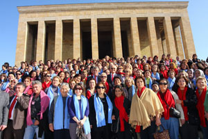 Konak Belediyesi’ne bağlı spor merkezlerinde ve semt merkezlerinde kurslara devam eden 675 kadın Atatürk Haftası nedeniyle Anıtkabir’i ziyaret etti. Kursiyer kadınlar, Ata’nın mozelesine karanfil bırakarak, ilkelerine bağlılık sözü verdi. Atatürk Haftası’nın coşkusunu yaşatmak için semt merkezlerinde ve spor merkezlerindeki 675 kursiyerle birlikte Anıtkabir’i ziyaret ettiklerini belirten Belediye Başkanı Muzaffer Tunçağ, “İzmir’in aydınlık yüzlü insanları Atatürk’ün ilkelerine sonsuza dek bağlı kalacaklardır. Atatürk’ün çizdiği yolda ilerleyecek Türkiye, kadınların her alanda aktif çalışmalarıyla olacaktır. Biz de Konak Belediyesi olarak kadınların çalışmalarına destek vermeye devam edeceğiz” dedi. Anıtkabir ziyaretinin ardından, kadınlardan 14 kişilik heyet, Muzaffer Tunçağ’la birlikte TBMM Başkanvekili ve İzmir Milletvekili Güldal Mumcu’yu ve CHP Grup Başkanvekili Kemal Anadol’u, Türkiye Büyük Millet Meclisi’nde ziyaret etti.