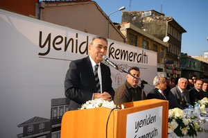 Tarihi Kemeraltı Çarşısı’nı canlandırmak ve ekonomik kriz nedeniyle sarsıntı geçiren esnafa nefes aldırmak amacıyla İzmir Büyükşehir Belediyesi, Konak Belediyesi, İzmir Esnaf ve Sanatkarlar Odaları Birliği ve Tarihi Kemeraltı Esnaf Derneği elele verdi. Bu kapsamda önümüzdeki yılın Mart ayına dek sürecek ve çarşıda düzenlenecek sosyal ve kültürel etkinlikleri kapsayan “Yeniden Kemeraltı Projesi” hayata geçirildi. Projenin esnafa ve kamuoyuna tanıtımı amacıyla çarşı içindeki Ali Paşa Meydanı’nda bir bilgilendirme toplantısı düzenlendi. Aziz Kocaoğlu, kent merkezini geliştirmenin ve turisti burada tutmanın yolunun tarihi zenginlikleri korumaktan geçtiğini belirterek, Kemeraltı’nın bu anlamda büyük önem taşıdığını söyledi. Kadifekale’nin, bu bölgede ortaya çıkarılacak anfitiyatronun ve Agora’nın Kemeraltı’nın canlanmasıyla doğrudan bağlantısı olduğunu dile getiren Kocaoğlu, “İkiçeşmelik bölgesinin bugünkü durumu ve bu salaş görüntüsüyle Kemeraltı için bir umut ışığı doğmaz. Bu bölgeyi de düzenlememiz gerekiyor” dedi. Kocaoğlu, çarşının yeniden ayağa kaldırılması için cephe düzenlemesi çalışmalarında üçüncü etaba gelindiğini ve çarşının bazı bölgelerinin üstünün örtülmesi için açılan proje yarışmasının tamamlandığını belirterek, doğal granitten uzun yıllar bozulmayacak kaldırım ve yol düzenlemelerinin de gündemde olduğunu söyledi. “Yeniden Kemeraltı Projesi” kapsamında Büyükşehir Belediyesi’nin gece de devam edecek etkinlikler için düzenlenen aydınlatma projesi, ulaşım desteği ve benzeri hizmetler yoluyla 1 milyon YTL değerinde nakit katkı sağladığının da altını çizen Kocaoğlu “Kemeraltı ruhu sizde. O ruhu yeniden uyandırmak da sizin elinizde. Ahilik geleneğini yeniden yaşatacak olanlar da sizlersiniz. Biz hazırız. Biz bunu kendimize iş edindik. Kemeraltı’nın kalkınmasını istiyoruz” dedi. “Yeniden Kemeraltı Projesi” etkinlikleri nedeniyle Kızlarağası Hanı, Eski Belediye Binası önü, Abacıoğlu Han, Ali Paşa Meydanı, Salepçioğlu Hanı önü ve 926 Sokak aktivite alanı haline getirilecek. Etkinlikler kapsamında ise Kemeraltı sempozyumu düzenlenecek, Sanatkarlar Sokağı oluşturulacak, Çanakkale’den Cumhuriyete Müzesi kurulacak, Kemeraltı Sirki gösteri yapacak, spor kulüpleriyle buluşmalar gerçekleştirilecek, Kemeraltı turu düzenlenecek ve tematik alışveriş günleri, haftaları ve ayları uygulaması yapılacak, sektör günleri düzenlenecek. Ayrıca çeşitli yarışmalar yapılarak hediyeler dağıtılacak.