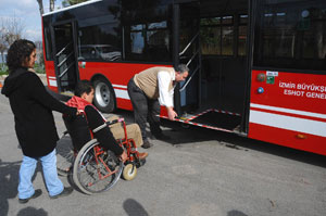 İzmir’de yaşayan engelliler, artık saatlerce, asansörlü özel otobüsleri beklemek zorunda kalmıyor. İzmir Büyükşehir Belediyesi, onlar için kısıtlı sayıda özel otobüsler satın almak yerine, yeni alınan toplu ulaşım araçlarının tamamında engellilerin kullanımına uygun donanımlar bulunmasını şart koşuyor. BMC Procity ve Mercedes Conecto modelleriyle filosunu güçlendiren İzmir Büyükşehir Belediyesi, böylece engelli otobüslerinin sayısını 424’e çıkardı. Yeni alınan otobüslerden 20 adet BMC Procity ve 15 adet Mercedes Conecto’dan oluşan 35 otobüs daha hizmete girdi. Alınan her iki model de, alçak tabanları ve yana yatma sistemiyle kolay inip binme olanağı sunuyor. Yaşlılar, engelliler ve hamile bayanlar artık otobüslere binerken zorlanmıyor. Başbakanlık Özürlüler İdaresi tarafından “Engelli Dostu Belediye” seçilen İzmir Büyükşehir Belediyesi, ayrıca engellilere ulaşım hizmetini ücretsiz olarak sunuyor.