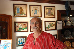 Alaçatı’nın mavi boyalı kapıları, taş yapıları, teneke kutularda, toprak saksılarda sardunyaları Fizik Yüksek Mühendisi Rıdvan Bayraktar’ın seramik üzerine cam boyası ile yaptığı resimlerde sunuluyor. İzmir raylı sistem projelerinde teknik danışman olarak çalışan Bayraktar’ın daha önce metal malzemelere, şimdi seramik üzerine kendine özgü teknikle yaptığı resimler, Alaçatı’da eşi Gülderen Bayraktar tarafından yönetilen Höyük El Sanatları ve Sanat Galerisi’nde sergileniyor. Bugüne kadar sekiz sergi açan ve üç karma sergiye katılan Rıdvan Bayraktar’ın “Yapılar Kapılar / Alaçatı” adlı dokuzuncu kişisel sergisi Alaçatılılar’dan, beldenin yerli ve yabancı konuklarından büyük ilgi görüyor. Bayraktar, cam boyası ile yaptığı çalışmalarla ilgili her hangi bir kurs almadığını belirtiyor ve 1986 yılında takı alanında başladığı hobi çalışmalarında olduğu gibi bu sergide yer alan seramikte cam boyası çalışmalarının da kendi alanında bir ilk olduğunu vurguluyor.