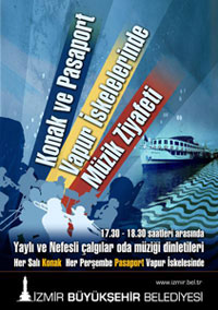 İzmir Büyükşehir Belediyesi, metro istasyonlarından sonra Konak ve Pasaport’taki vapur iskelelerinde de müzik dinletilerine başladı. Büyükşehir Belediyesi Kültür Şube Müdürlüğü’nden verilen bilgiye göre, dinletiler, her hafta Salı günleri Konak Vapur İskelesi’nde ve Perşembe günleri de Pasaport Vapur İskelesi’nde, 17:30 – 18:30 saatleri arasında gerçekleştirilecek. Konak Vapur İskelesi’nde 21 Temmuz 2009 Salı günü başlayacak olan dinletilerde yaylı çalgılar oda müziği dinletisi sunuldu. 23 Temmuz Perşembe günü Pasaport’ta gerçekleşecek dinletide ise nefesli çalgılar oda müziği dinletisi sunulacak.