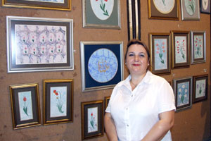 İzmir’in Çeşme ilçesindeki tarihi kilise yaz mevsiminin son sergisine ev sahipliği yapıyor. Son dönemlerde Çaka Bey Sanat Galerisi olarak kullanılan kilisede geleneksel el sanatlarının birbirinden güzel eserleri sergileniyor. Ebru sanatını geleneksel yöntemlerle doğaltaşa ve mermere uygulayan Estetik Ebru sanatçılarından Kadriye Sayınbatur’un eserleri de tarihi kilisedeki karma sergide yerini aldı. Sayınbatur’un sergisinde ebru sanatının tüm özelliklerini yansıtan ipek ve kumaş fularlar yanında doğal taşlar, çerçevelenmiş kağıt tablolar, kitap ayraçları ve aksesuvarlar dikkat çekti. Kadriye Sayınbatur’un sergilediği eserler arasında özellikle ebru uygulanmış doğal taşlar ziyaretçilerden büyük ilgi gördü. Ebrulu doğaltaşların ilk kez 15. Uluslararası Doğaltaş ve Teknolojileri Fuarı Marble 2009’da görücüye çıktığını hatırlatan Sayınbatur, gördükleri ilginin sevindirici olduğunu belirtti.