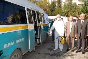 İzmir Esnaf ve Sanatkarları Odaları Birliği (İESOB) ve ilgili odaların başlattığı çalışmayla İzmir’deki taksi ve minibüsler ile Menemendeki yolcu taşıyan ticari araçlar, domuz gribine karşı dezenfekte edildi. Önümüzdeki günlerde de topluma hizmet veren mesleklerde gerekli önlemlerin alınacağını belirten İzmir Esnaf ve Sanatkarlar Odaları Birliği Başkanı Zekeriya Mutlu, Berber, lokanta ve pastane gibi yerlerde de dezenfekte işlemleri gerçekleştirilecek. Doğrudan halka hizmet veren Esnaf teşkilatı bu konuda oldukça duyarlı. Vatandaşlarımızın günlük hayatlarını güvenli bir şekilde sürdürmeleri için her türlü tedbiri alacağız. dedi.