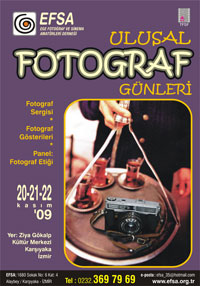 Ege Fotoğraf ve Sinema Amatörleri Derneği’nin (EFSA) 20 21 22 Kasım tarihlerinde Karşıyaka Ziya Gökalp Kültür Merkezinde düzenleyeceği 1. Ulusal Fotoğraf Günlerinde Türkiyenin fotoğraf severlerini bir araya getirecek. EFSA Başkanı Günal Güngör, İzmirde onlarca fotoğraf gönüllüsüne karşın böyle bir düzenlemenin eksikliğini fark ettiğini belirtti. Güngör, Amacımız İzmir ve Türkiyedeki fotoğraf dostlarını bir araya getirmek, birbirimizin fotoğraflarını ve fotoğraf üzerine düşüncelerini paylaşabilmektir dedi. 20 Kasım Cuma günü saat 18.00de Ziya Gökalp Kültür Merkezinde EFSA üyelerinin Ayna konulu fotoğraf sergisiyle başlayacak etkinlik, 21 Kasım Cumartesi günü Türkiyedeki değişik 20 fotoğraf derneğinin sunumlarıyla sürecek. Türkiye Fotoğraf Sanatçıları Federasyonu (TFSF) Başkanı Özcan Tarasın yanı sıra Yrd. Doç. Şebnem Soygüder ve fotoğraf sanatçısı Orhan Alptürkün konuşmacı olarak katılacağı Fotoğraf Etiği ve Yarışmalar konulu panelin moderatörlüğünü Yrd. Doç. Ahmet İmançer yapacak.