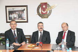 İzmir Valisi Cahit Kıraç, İzmir Emniyet Müdürü Ercüment Yılmaz ile birlikte Türkiye Gazeteciler Federasyonu (TGF) Başkanlığına seçilen Atilla Serteli ziyaret etti. TGF Genel Sekreteri Merih Ak ile İzmir Gazeteciler Cemiyeti (İGC) Yönetim Kurulu üyelerinin de bulunduğu ziyarette konuşan Vali Kıraç, TGF Genel Başkanlığına İzmirden bir ismin seçilmesinin kentin tanıtımına da önemli bir katkı sağlayacağını dile getirdi. Vali Cahit Kıraç, Sayın Atilla Sertelin yeni görevi ile birlikte İzmir – Ankara arasında tanıtım köprüsü kuracağına inanıyorum dedi. TGF ve İGC Başkanı Atilla Sertel, Vali Kıraç ile Emniyet Müdürü Yılmazın ziyaretinden mutluluk duyduklarını söyledi.