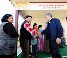 Vatandaşlara ucuz, kaliteli ve sağlıklı ekmek olanağı sağlamak amacıyla kurulan Kent Ekmek Fabrikası, nisan ayı sonunda günlük ekmek üretimini 44 bin adetten 120 bin adete çıkaracak. Vatandaşlardan gelen talep doğrultusunda sayıları artan büfelerin çalışma saatleri de uzatıldı. Büfeler bundan böyle pazar günleri hariç 06.00-18.00 saatleri arasında ekmek satışı yapacak. Halen 26 adet ekmek büfesiyle hizmet veren Kent Ekmek Fabrikası’nın bu sayıyı 70’e çıkartacağı belirtildi. İç ve dış tasarımları yenilenen büfelerlerden ilk etapta 11 tanesi hizmete girerken, nisan ayı sonuna kadar bu sayının 70’i bulacağı belirtildi. Gümüşpala Nafiz Gürman Mahallesinde yeni tasarlanan ekmek büfesini ziyaret eden İzmir Büyükşehir Belediye Başkanı Aziz Kocaoğlu, kent ekmek büfelerinin, dar gelirli vatandaşlar için önemli bir hizmet olduğunu söyledi.İzmir Büyükşehir Belediyesi’nin yeni kent ekmek büfesi açacağ ımahalleler şunlar: Karşıyaka: Örnekköy mahallesi, Çiğli : Egekent, Evka 5, Küçük Çiğli ve Çiğli Cumhuriyet mahalleleri, Bayraklı: Nafiz Gürman 2, Yamanlar 2, Adalet, Osmangazi, Refik şevket İnce ve Postacılar mahalleleri, Bornova : Serintepe, Yeşilova, Mevlana, Doğanlar, Gürpınar, Evka 3, Işıklar, Atatürk, Evka 4, Çınar ve Kızılay mahalleleri, Konak: İsmet Paşa, Atamer, İkinci Kadriye, Hasan Özdemir, Selçuk, Çınartepe, Karabağlar: Selvili, Salih Omurtak, Refet Bele, Cennetçeşme, Günaltay, Yurtoğlu, Gülyaka, Cennetoğlu, Vatan ve Peker mahalleleri, Buca : İnönü, Atatürk, Buca Koop., Göksü, Çağdaş, Laleli, Kozağaç, Akıncılar, Menderes ve Fırat mahalleleri, Gaziemir: Aktepe, Beyazevler ve Dokuz Eylül mahalleleri.