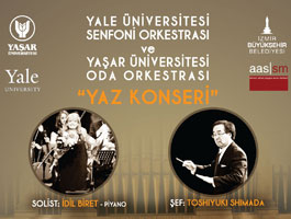 İzmir Büyükşehir Belediyesinin Yaşar Üniversitesi Oda Orkestrası ve Yale Üniversitesi Senfoni Orkestrası ile ortaklaşa düzenleyeceği “Yaz Konseri”, klasik müzikseverleri dünyaca ünlü piyanistimiz İdil Biretle buluşturacak. Ahmed Adnan Saygun Sanat Merkezindeki konser 2 Haziran 2010 Çarşamba günü saat 20.30da başlayacak. Şef Toshiyuki Shimada’nın yöneteceği Yaz Konseri’nin davetiyeleri Ahmet Adnan Saygun Sanat Merkezi gişesi, Yaşar Üniversitesi Bornova Selçuk Yaşar Kampüsü ve Alsancak Kampüsünden sağlanabilir.