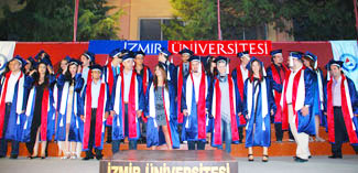 İzmir Üniversitesi, Meslek Yüksekokulu’nun Bilgisayar Programcılığı, Elektronik ve Haberleşme Teknolojileri ile Turizm ve Otel İşletmeciliği programlarında eğitimini başarıyla tamamlayan 113 öğrencisiyle ilk mezuniyet coşkusunu yaşadı. Törende konuşan İzmir Üniversitesi Mütevelli Heyet Başkanı Necdet Doğanata, Türkiyede liseyi bitiren ve üniversite eğitimi almak isteyen her gence bu imkanın sunulması gerektiğini söyledi. Doğanata, Bu ülkede dışarıda kalan öğrencilerin de üniversiteye gitmelerini, dünyadaki gençlerle aynı imkanlara sahip olmalarını istiyorum. 60 bin öğrencisini başta Amerika olmak üzere yurtdışında okutan bir ülkenin geri kalmaması mümkün değil. Ben bu 60 bin öğrenciyi de ülkemizde okutalım, onlara gerekli imkanları sunalım istiyorum dedi.Rektör Prof. Dr. Kayhan Erciyeş, İzmir Üniversitesinin ilk mezunlarından biri olmanın her bir öğrenciye farklı bir sorumluluk yüklediğini dile getirdi.