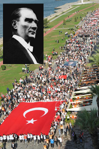 Türkiye Cumhuriyeti’nin kurucusu Mustafa Kemal Atatürk,ölümünün 72. yıldönümünde etkinliklerle anıldı. Cumhuriyet Alanı’ndaki Atatürk Anıtına çelenklerin sunulmasıyla başlayan anma etkinlikleri saat 09.05’teki saygı duruşuyla sürdü. Dokuz Eylül Üniversitesi Sabancı Kültür Merkezi Hasan Tahsin Salonu’ndaki resmi anma etkinliği düzenlendi. DEÜ Devlet Konservatuarı Orkestrası İstiklal Marşı’nı seslendirdi. “Kurtuluş Savaşının Sessiz Tanıkları: Kartpostallar” konulu belgesel sunuldu. DEÜ Devlet Konservatuarı’nın şan dinletisinin ardından DEÜ Güzel Sanatlar Fakültesi Sahne Sanatları Bölümü’nce hazırlanan “Yürüyelim Arkadaşlar” adlı dramatizasyon gerçekleştirildi. Merkezin fuayesinde “Toplumsal Yaşam ve Atatürk” konulu fotoğraf sergisi açıldı. İzmir Büyükşehir Belediyesi’nin düzenlediği “Atatürke Saygı Yürüyüşü” binlerce İzmirli’yi bir araya getirdi. Alsancak Limanından başlayan yürüyüş Cumhuriyet Meydanında son buldu.