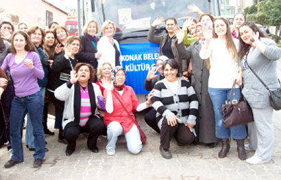 90 kişinin katıldığı Pamukkale seyahatinde bir gece konaklayan Gültepeli kadınlar, gündüz termal havuzun ve birçok derde deva kırmızı çamurun içinde yorgunluk attı, akşam yemeğinde de canlı müzik eşliğinde geç saatlere kadar eğlendi.