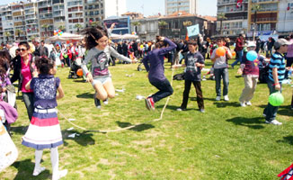 Büyüklerin de zaman zaman eşlik ettiği oyunlarla kentte karnaval havası esti. Konak Belediye Başkanı Hakan Tartan da miniklerle birlikte uçurtma uçurdu, ip atladı, top oynadı. Gündoğdu Meydanında kurulan eğlence alanında Konak ilçe sınırları içindeki ilköğretim okullarından, konuk ülkelerden ve illerden gelen yüzlerce çocuk şenliğe renk kattı. Çocuklara sokakta oynanan çeşitli oyuncaklar dağıtıldı.