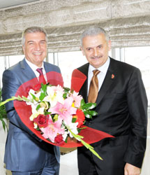 Görüşmelerden sonra anı defterini imzalayan Binali Yıldırım, İzmirin en önemli ve en büyük ilçesi Karşıyakanın daha da güzelleşmesi, hizmetlerinin çeşitlenerek artması anlamında gayret eden Belediye Başkanı Cevat Durak ve ekibini tebrik ediyorum diye yazdı.