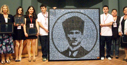 Ege Üniversitesi Diş Hekimliği Fakültesi 19 Mayıs Atatürk’ü Anma Gençlik ve Spor Bayramı öncesinde periapikal röntgen filmlerinden hazırlanmış Atatürk portresini görsel bir şölen eşliğinde sundu. Ege Üniversitesi Diş Hekimliği Fakültesi 5. sınıf öğrencisi stajyer diş hekimi Mikail Özmartı’nın hazırladığı ve Binden Bire Atatürk adını verdiği 2300 adet periapikal röntgen filmden yapılan Atatürk portresi izleyenleri kendine hayran bıraktı.