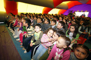Yaklaşık 120 metrekare büyüklüğünde havayla şişen sahnesi ve seyirci koltukları nedeniyle “balon” adını taşıyan tiyatro, beş gün boyunca Bayraklının mahallelerinde öğrencilerle buluştu. Kimi öğrenciler ilk kez bir tiyatro oyunu izlemenin keyfini yaşarken kimileri de tiyatronun balondan oluşan rengarenk ortamından gözlerini alamadı. Usta tiyatrocular ise oyunlarıyla çocuklara neşeli dakikalar yaşattı.