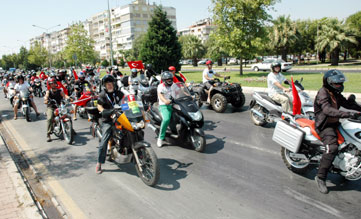 Yamanlar Köyü piknik alanında üç gün sürecek festivale ülkemizin birçok il ve ilçesinden, yurtdışından 700 motosiklet ile yaklaşık 1200 kişi katıldı. İlk gece kamp ateşi yakıp saat sabahlara kadar müzikler eşliğinde danslar yapan motosikletliler, bugün de sokaklarda geçit gerçekleştirdi. Karagöl yolundan Girne Caddesine, daha sonra sahilden Mavişehire kadar konvoy halinde giden motosikletliler, Bostanlı Demokrasi Meydanına geldi. Buradaki törene katılan Karşıyaka Belediye Başkanı Cevat Durak, İZMOT (İzmir Motor Grubu) Başkanı Akın Zorluer ile birlikte anıta çelek koydu.