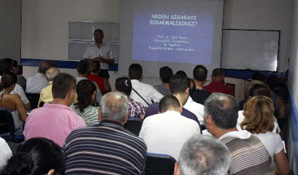 Dokuz Eylül Üniversitesi Hastanesi Göğüs Hastalıkları Anabilim Dalı bünyesinde hizmet veren Sigara Bırakma Polikliniği, her ay düzenlenen sigara bırakma seminerleri ile tiryakilere can simidi oldu. Prof. Dr. Oğuz Kılınçın başkanlığını yaptığı Sigara Bırakma Polikliniğinde seminere katılmak için her ay başvuranların sayısı 100ü buluyor. Bu seminerlerde, Sağlık Bakanlığının Ücretsiz sigara bırakma kampanyası kapsamında tedavi olmak isteyenlere bilgi ve değerlendirme formları dağıtılıyor. Sigara bırakma kararlılığında olanlar bu formları dolduruyor, sonra sağlık kontrolünden geçiriliyor ve uygun kriterleri taşıyorlarsa ücretsiz tedavi sürecine alınıyorlar.