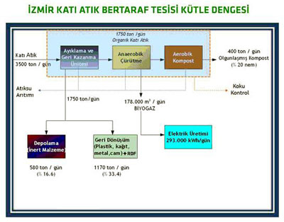 2005 yılından beri yer seçimi kadar teknoloji seçimi konusunda da hassasiyetle çalışılan proje, dünyadaki 100e yakın firma ve teknolojilerin incelenmesiyle belirlendi. Türkiyede ilk kez yüksek miktarda atığın kapalı sistemde tam otomatik işlenerek değerlendirileceği tesis; kompost ünitesi, anaerobik çürütücü, kontrol odası, hava kontrol ünitesi, ayrıştırma tesisi ve atık kabul alanı bölümlerinden oluşacak. Katı atık değerlendirme tesisi, tamamen kapalı sistemle çalışacak ve negatif basınç uygulamasıyla dışarıya koku sızmayacak. Atıkların çevreye hiç bir zarar vermeden ortadan kaldırılmasını sağlayacak olan proje aynı zamanda, çöpün ekonomik anlamda da değerlendirilmesine imkan tanıyacak. Tesisin çıktılarından geri dönüşüm sanayisine hammadde, RDF ek yakıt, enerji ve kompost elde edilecek. Biyogaz ünitesinde 250 bin kişinin ihtiyacını karşılayacak nitelikte elektrik üretilecek. Tesisin bir diğer çıktısı ve dağıtımı yapılacak ürünü ise tarımsal gübre olacak.
