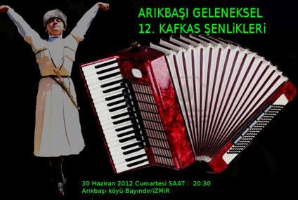 Arıkbaşı Köyü’nde bu yıl 30 Haziran 2012 Cumartesi günü düzenlenecek 12. Kafkas Şenlikleri’nin Almanya, Rusya, Suriye, Ürdün ve Adige Özerk Cumhuriyeti’nden ve yurt içinden konukları olacak. Çınarlı Kahve’de Hacığeps (Darıunundan çorbadan kıvamlı etli çerkes yemeği) ikramıyla başlayacak şenlik, Çerkesce Mevlit okunmasıyla sürecek. Köy meydanında Arıkbaşı Köyü ve İlkKurşun Köyü halk oyunları ekipleriyle İzmir Kafkas Derneği ekipleri gösteriler yapacak, serbest Çerkes düğünü canlandırılacak.