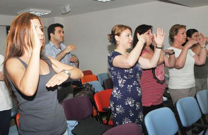 İşaret dili eğiticisi ve İzmir Büyükşehir Belediyesi Kent Konseyi Engelli Meclisi Yürütme Kurulu üyesi olan Ayşe Gürbulakın öğretmenliğinde yürütülen derslere katılan personel, şimdiden duygularını ifade etmeyi, zaman kavramını, meslekleri ve şarkı söylemeyi öğrendi. Kasım ayına kadar sürecek kursun sonunda öğrencilerinin işaret el alfabesini öğreneceğini belirten Gürbulak, toplamda 3 bin 400 kelimeyi anlatabilecek duruma geleceklerini ve tercümanlık belgesi alacaklarını söyledi.