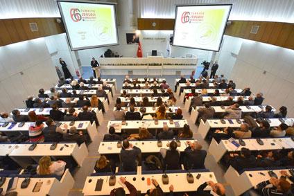 Dokuz Eylül Üniversitesi Öğretim Üyesi Prof. Dr. Hasan Sözbilir, İzmirde doğal afet riski konusuna değinerek kent ve çevresinde 13 tane deprem üretebilecek fay tespit edildiğini açıkladı. Sunumuna deprem fayları ile ilgili devam eden Sözbilir, ardından kentsel dönüşüm konusunda da bilgilendirme yaptı. Kentsel dönüşüm yapılacak alanlarda deprem haritalarının yeniden yapılması gerektiğine vurgu yapan Prof. Sözbilir, konu hakkında örnekler sundu ve Kentsel dönüşüm binadan değil zeminden başlamalıdır diye konuştu.